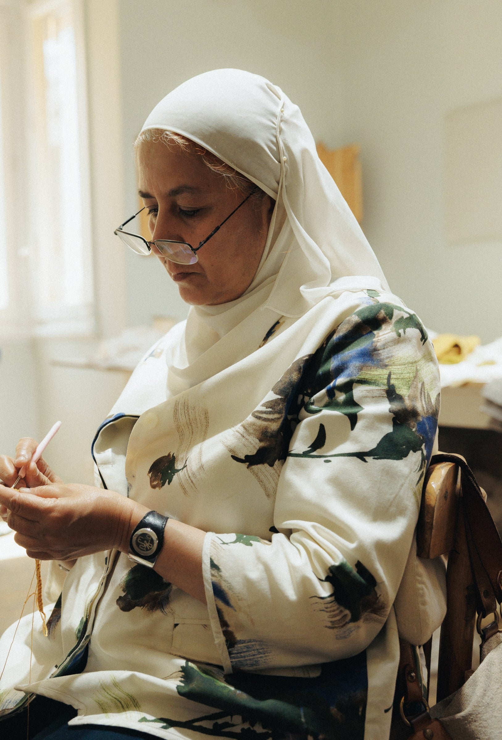 This product is by Malaika Linens, a brand celebrated for its refined home textiles, and features the crochet technique by the women artisans of Threads of Hope (TOH), a training and production center supporting underserved women and refugees through embroidery and other traditional crafts.
