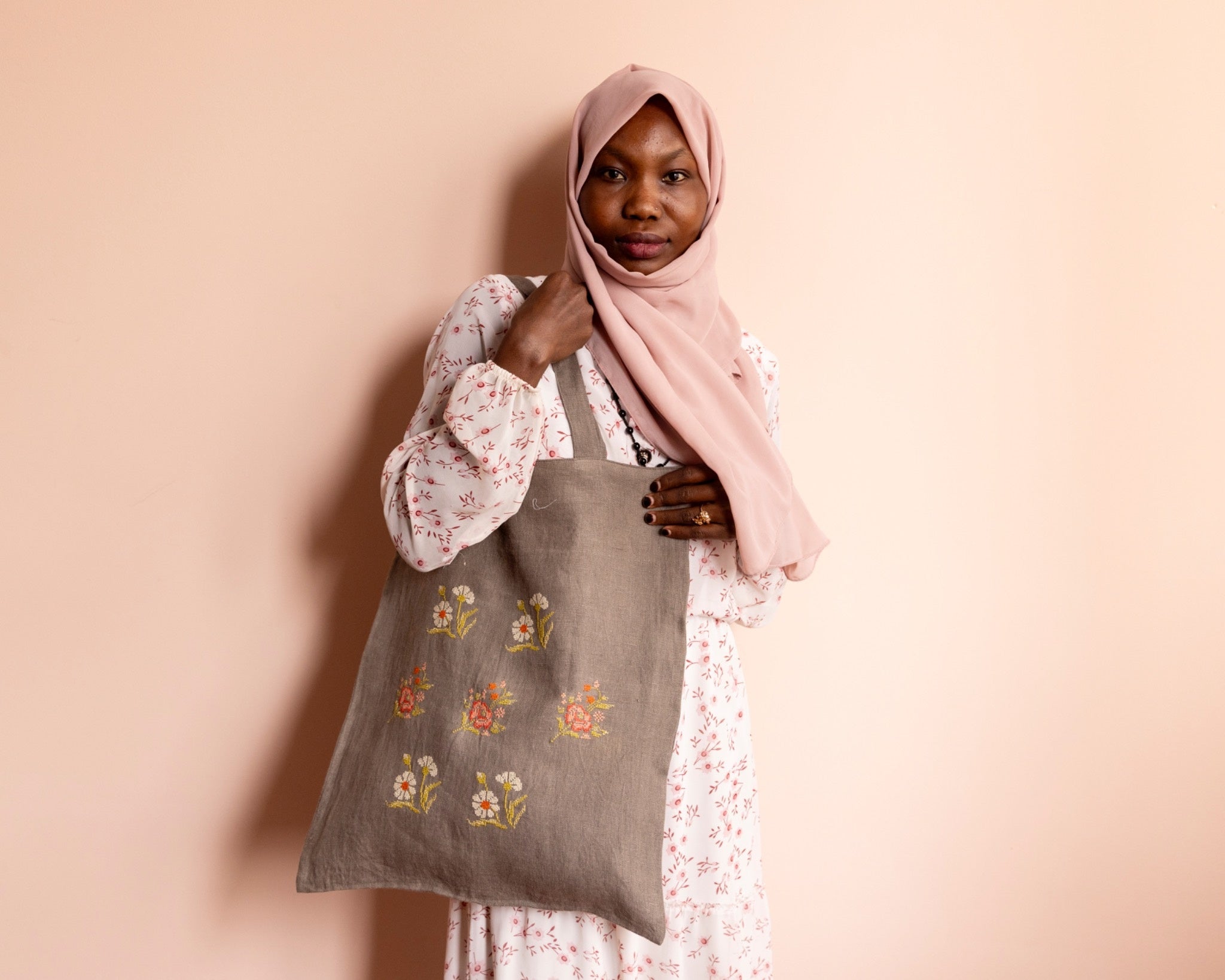 Elevate your everyday with our Flower Tote Bag. Featuring a beautifully hand-stitched floral design, this tote is crafted using traditional cross stitch techniques and natural dyeing for a truly unique, eco-conscious finish.