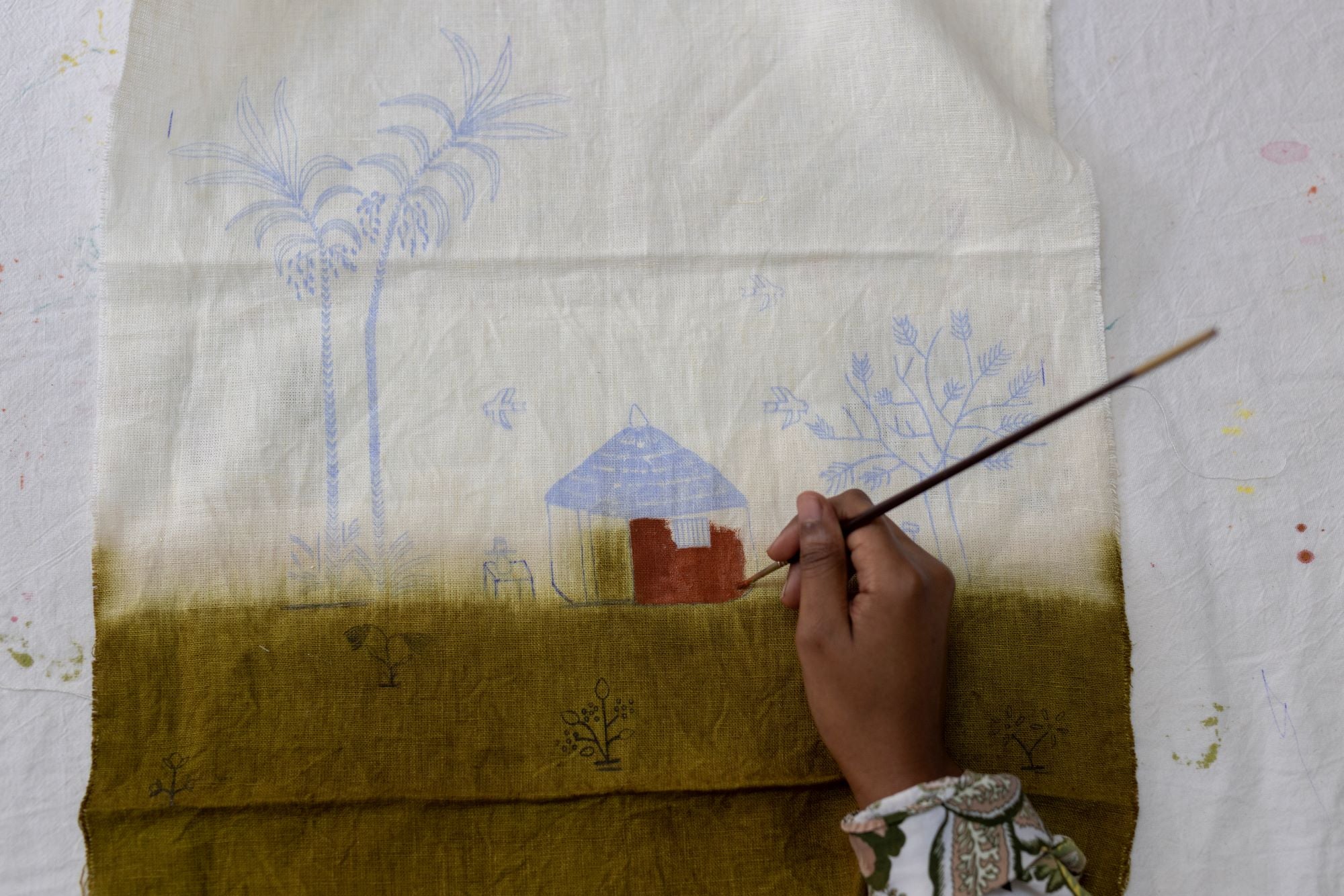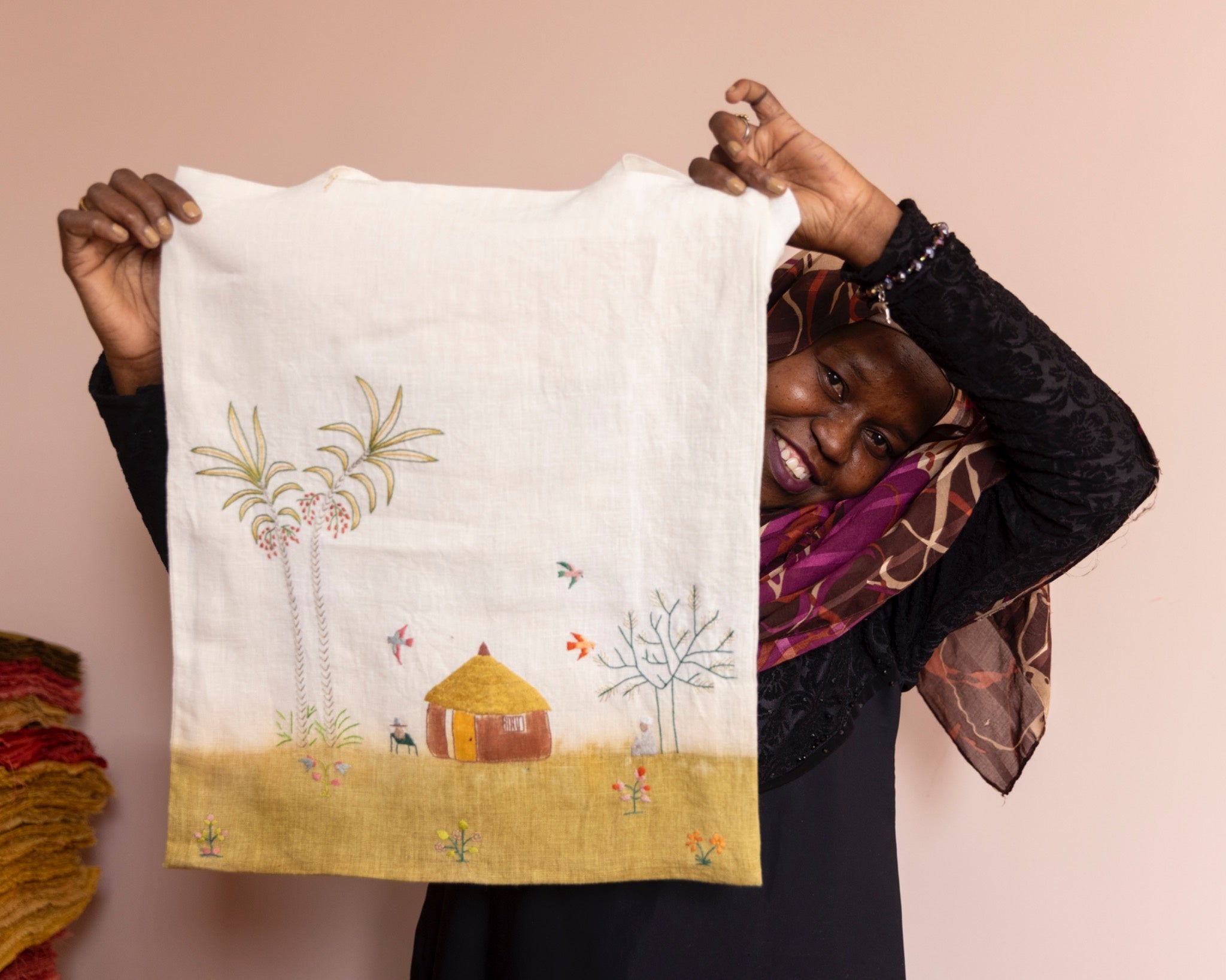 Embrace the beauty of Sudanese culture with our Sudanese Home Tote Bag. This linen tote bag showcases intricate designs of trees, a home, flowers, and birds, all inspired by Sudanese landscapes. The bag is brought to life with a combination of natural dyeing, hand embroidery and hand painting, creating together a vibrant and unique piece. Lightweight, functional, and eco-friendly, it is a perfect blend of artistry and practicality. It is also a lovely gift to share with family and friends, especially those always on the go. Each bag is handcrafted using multiple techniques, making every piece one of a kind.