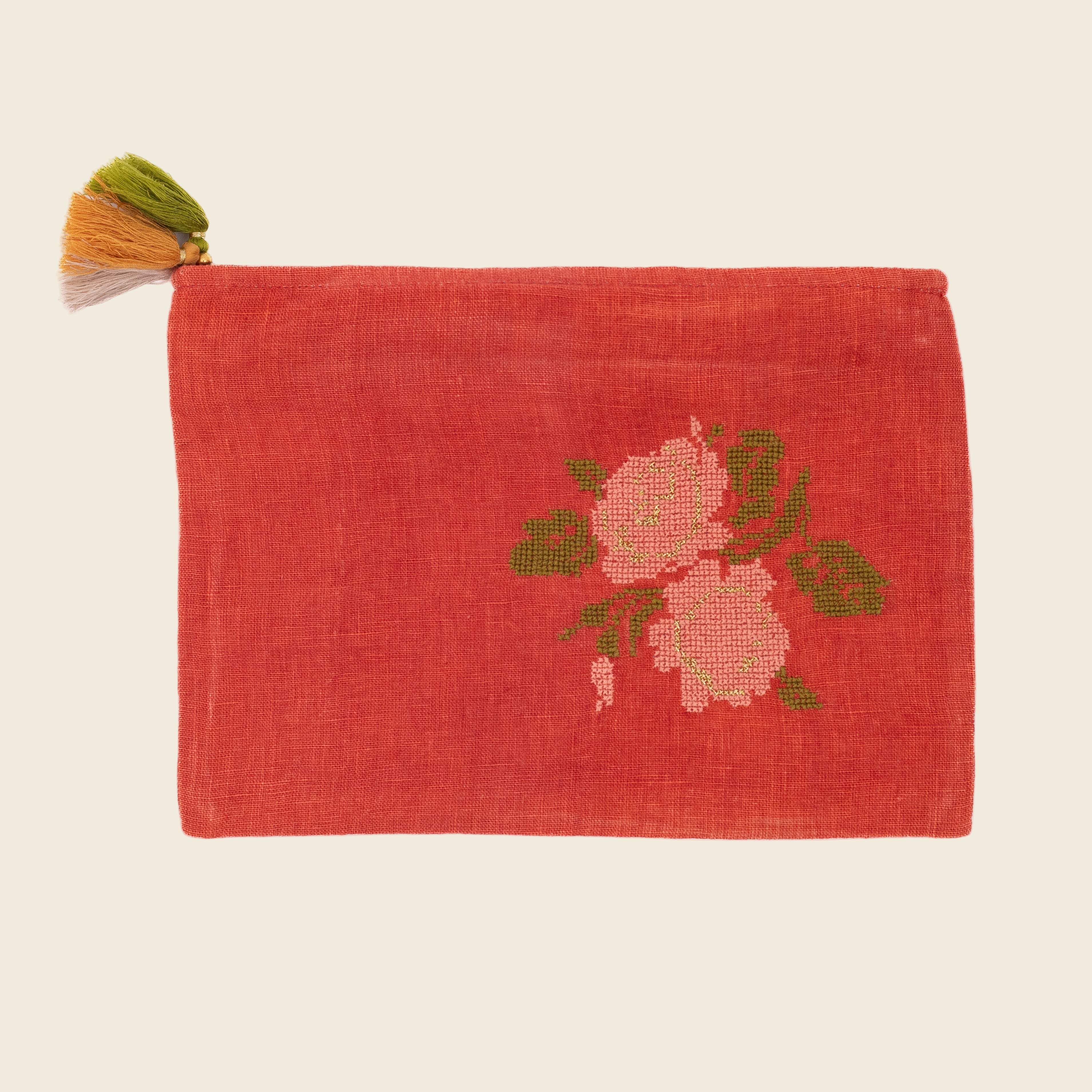 Add a touch of timeless classic, refinement and elegance to your essentials with our embroidered Syrian Rose Pouch. Combining both functionality and artistic charm. Lightweight, durable, ideal for travel and organizing small items, or even as a simple thoughtful gift. Each pouch is uniquely hand-embroidered, making every piece a distinct work of art.